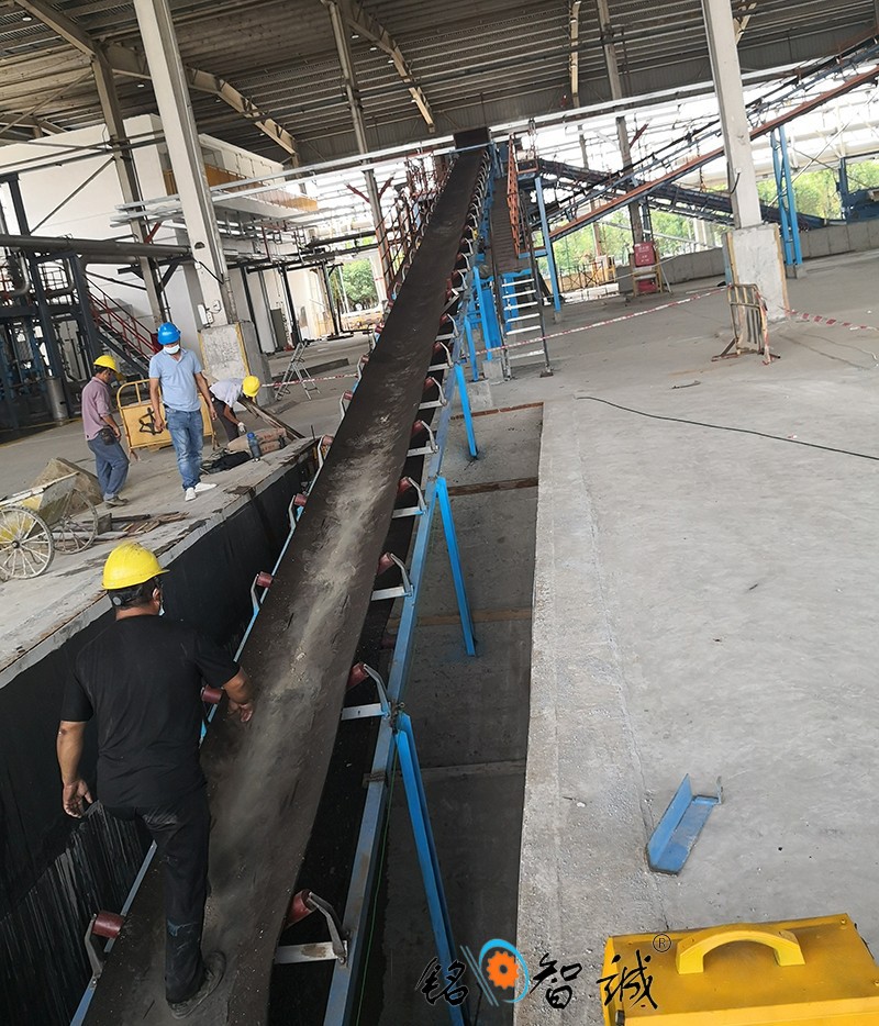 旋轉(zhuǎn)式皮帶輸送機其結(jié)構(gòu)是在平形橡膠運輸帶兩側(cè)粘上可自由伸縮的橡膠波形立式"裙邊”, 在裙邊之間又粘有一定強度和彈性的橫隔板組成匣形斗,使物料在斗中進行連續(xù)輸送。擋邊帶式輸送機可廣泛用于煤炭、糧食、建材、化工、水電和冶金等部門,在環(huán)境溫度為- 19°C ~ +40°C范圍內(nèi),輸送堆積比重為0.5-2.5t/m3的各種散狀物料。對于輸送有特殊要求的物料,如高溫、具有酸、堿性、油類物質(zhì)或有機溶劑等成分的物料,需采用特殊的擋邊輸送帶。